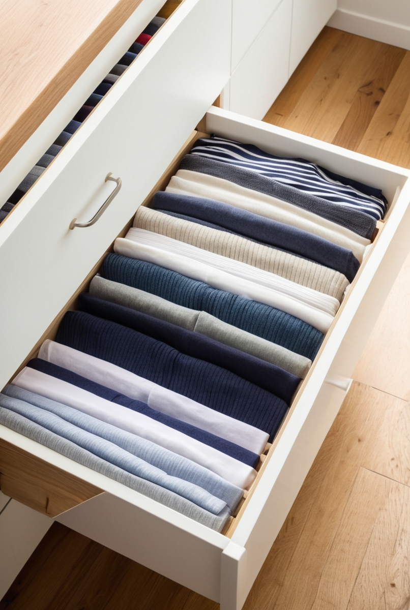 Когда каждая футболка сложена, начинается магия настоящей организации пространства. Чтобы вертикальное хранение работало, а одежда не превращалась в хаос, используйте простые, но эффективные инструменты.