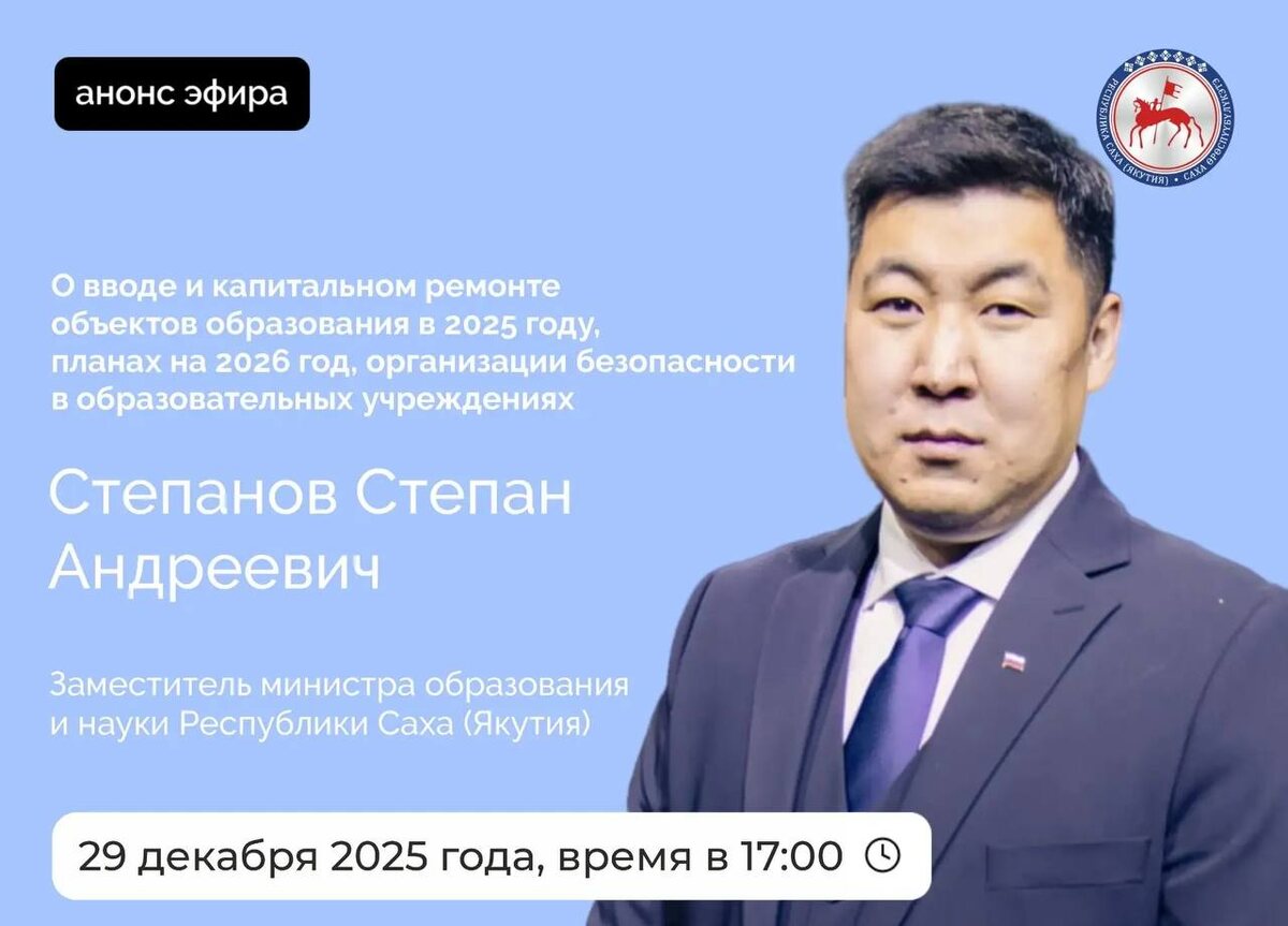 ΠΠ°ΠΌΠΌΠΈΠ½ΠΈΡΡΡΠ° ΠΎΠ±ΡΠ°Π·ΠΎΠ²Π°Π½ΠΈΡ ΠΈ Π½Π°ΡΠΊΠΈ ΡΠ΅ΡΠΏΡΠ±Π»ΠΈΠΊΠΈ Π‘ΡΠ΅ΠΏΠ°Π½ Π‘ΡΠ΅ΠΏΠ°Π½ΠΎΠ² Π² ΡΠ΅Π³ΠΎΠ΄Π½Ρ, 29 Π΄Π΅ΠΊΠ°Π±ΡΡ, ΠΏΡΠΎΠ²Π΅Π΄Π΅Ρ ΠΏΡΡΠΌΠΎΠΉ ΡΡΠΈΡ Π½Π° ΠΎΡΠΈΡΠΈΠ°Π»ΡΠ½ΡΡ