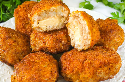 Ингредиенты: - 1 кг куриной мякоти - 160 г твердого сыра - 100 г сливочного масла - 4 ломтика черствого батона - 2 яйца - соль Приготовление: Мякоть курицы пропустите через мясорубку два раза, посолите и перемешайте. Сформуйте котлеты, внутрь каждой вложив по ломтику сыра, смочите в яйцах, обваляйте в крошкам батона и обжарьте на сливочном масле. Доведите до готовности в духовке. На гарнир подавайте отварной рис, свежие овощи. Оформите зеленью.