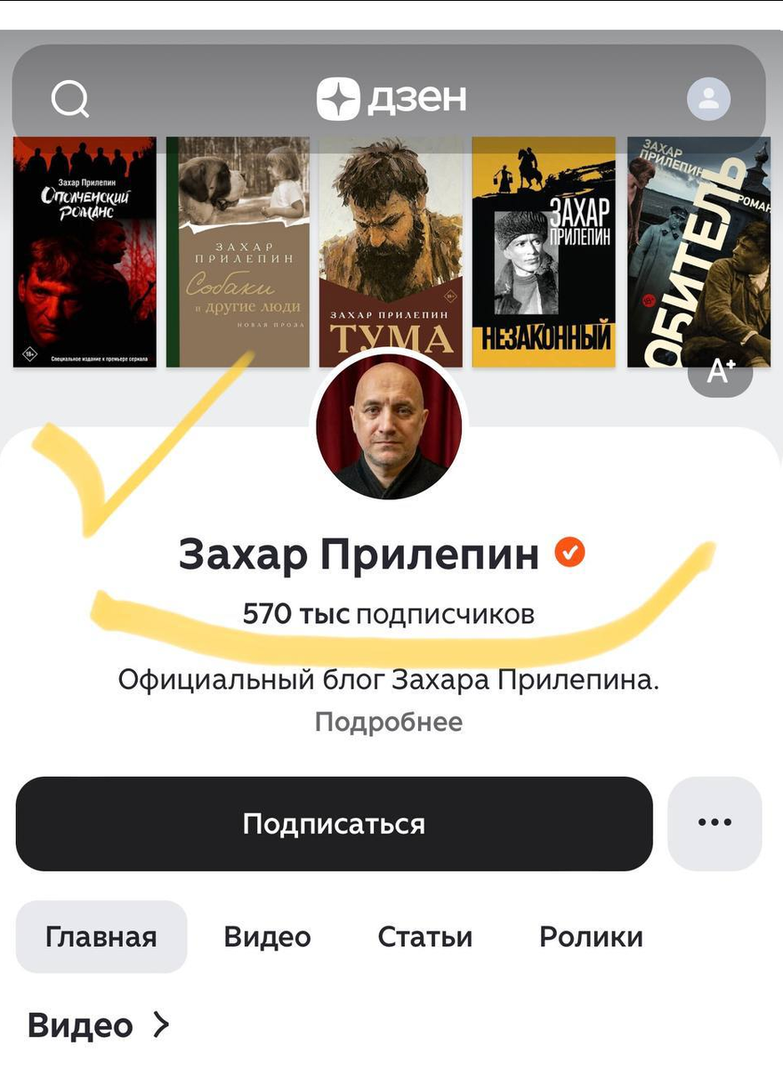 570 000 Дзен «Захар Прилепин» третий год остаётся самым читаемым авторским журналом в России. С чем я всех добрых и любопытствующих людей поздравляю. Вчера, между прочим, я был награждён ценным подарком. Генерал-лейтенант вручал! На всех возможных фронтах служим богоданному Отечеству, а также советской моей Родине, присягу которой я принимал. А пока что читали и смотрели в минувшие недели на этом канале. 1 ВИЛЬНЫЕ УКРАИНЦИ В ПОЛЬШЕ | Захар Прилепин | Дзен 246 000 Атас. Придурь налицо. 2 ПЛАН ПЕРЕМОГИ | Захар Прилепин | Дзен 146 000 Их план. 3 ДЕМИС КАРИБИДИС ПО ПУТИ НА «МИРОТВОРЕЦ». ЧЁТКО! | Захар Прилепин | Дзен 93 000 Что-то происходит даже в «Камеди». 4 НЮ-С, СОВЕТСКИЙ НЮ | Захар Прилепин | Дзен 74 000 Самая любимая читателями живописная рубрика. 5 СОВ-НЮСЫ | Захар Прилепин | Дзен 58 000 Самая любимая читателями живописная рубрика. Два. 6 НЮ-С СОВЕТСКИЙ | Захар Прилепин | Дзен 42 000 Самая любимая читателями живописная рубрика. Ещё одна. 7 БОЙЦЫ НАШЕЙ АРМИИ ОБРАЩАЮТСЯ К АРМИИ В
