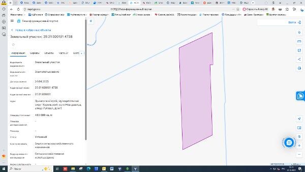 Название: Земельный участок с кадастровым номером 25:21:020101:4738 площадь 463000 по адресу: Приморский край, муниципальный округ