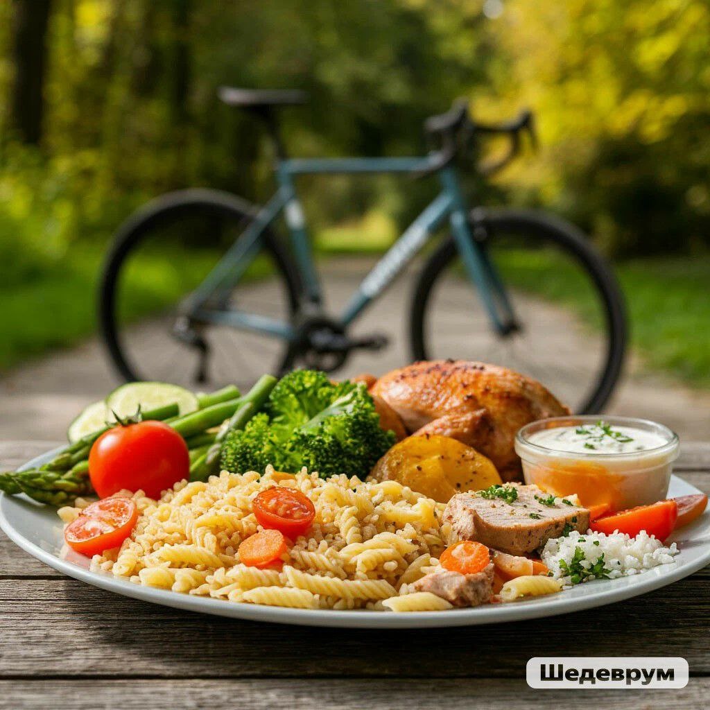 Цель — обеспечить организм достаточным количеством энергии на всю тренировку. Выбирайте простые блюда, содержащие сложные углеводы и небольшое количество белка. Рекомендуемые продукты и блюда: Что исключить из рациона перед тренировкой: Если не удалось поесть за 2 часа до тренировки, сделайте лёгкий перекус — он обеспечит быстрый прилив энергии. Варианты перекуса: а) Первые 20–30 минут: быстрое восполнение энергии Сразу после нагрузки организму нужны легкоусвояемые углеводы. Подходящие продукты: б) Через 1–2 часа: полноценный приём пищи Важно включить в рацион: Примеры сбалансированных блюд: 1. Питьевой режим: 2. Индивидуальные особенности: прислушивайтесь к своему организму. Если какой‑либо продукт вызывает тяжесть или дискомфорт — исключите его из предтренировочного рациона. 3. Размер порции: не переедайте. Порция должна быть такой, чтобы после еды не возникало желания прилечь. 4. Для велопоездок (особенно длительных): возьмите с собой перекус (банан, энергетический батончик или бут