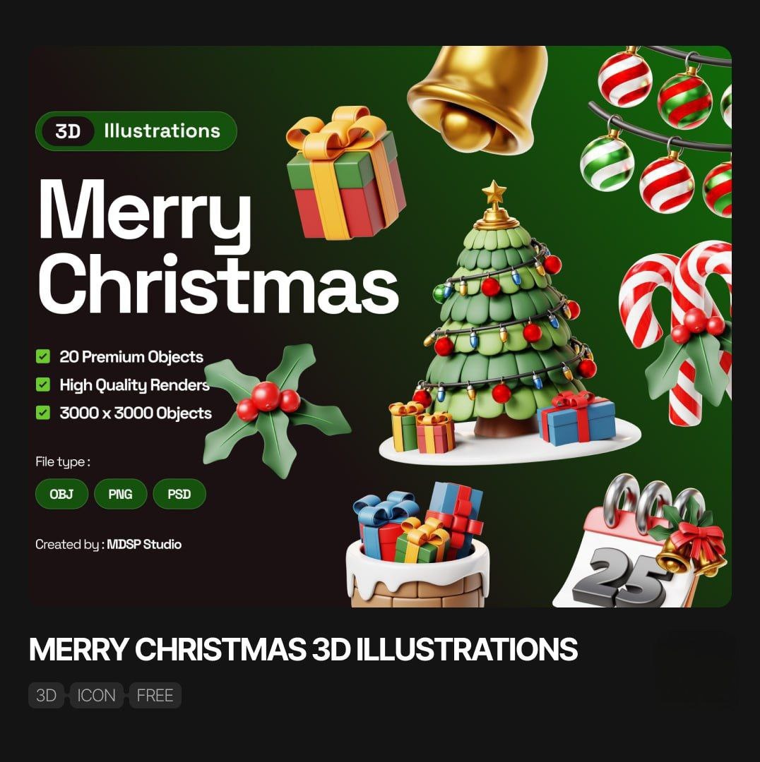 Mery Christmas PACK 2026 - иконки, рамки Формат: PNG Размер: 228 MB Состав: 🎁 ● 41 элемент Описание: 🎄 Новогодний пак из 3D иконок и атмосферных рамок. Скачать - тык Предложка - тык #MeryChristmasPACK2026 #рамки #иконки #новыйгод #2026