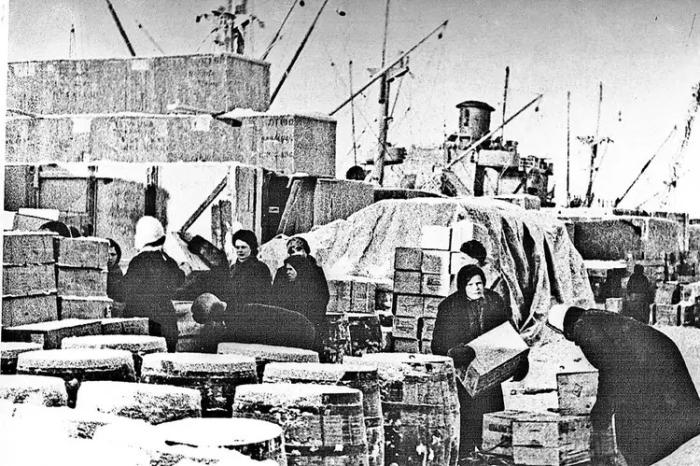 Отмечаются те же факты и в госархиве Мурманской области: «...наибольшее количество судов в военные годы приходило в порты Мурманск и Кандалакшу (южнее Мурманска. – Прим. ред.) под английским, а также под американским флагами; были суда под панамским, гондурасским, датским, польским флагами. С прибывших судов выгружали танки, станки, автомашины, военно-стратегическое сырье, продовольствие. За границу отправляли лес, апатит, магнетит, хром, воск, асбест, растительное масло, пушнину».