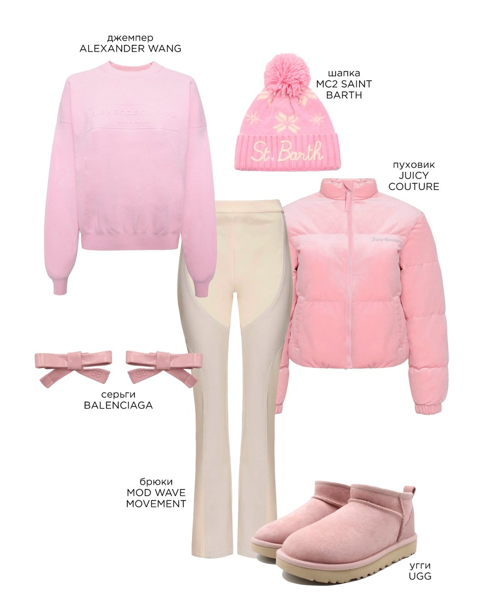 Зимние каникулы в горах — это особое состояние. Утренний холодный воздух, плотный снег под ногами, долгие завтраки с видом на склоны и медленные вечера у камина. В таком ритме одежда и аксессуары становятся частью настроения и удовольствия от поездки. Головные уборы Шапка — ключевая деталь зимнего гардероба для путешествий. Мягкие формы, плотные текстуры, ощущение уюта, которое считывается визуально. Такие модели хорошо работают в кадре, поддерживают верхнюю одежду и не спорят с остальными аксессуарами. В горах именно головной убор часто первым попадает в поле зрения — и этим стоит пользоваться. Шапка, пуховик, джемпер, брюки, угги, серьги Шарфы В фокусе — крупные, плотные модели, которые создают ощущение защищённости и визуального веса. Такой шарф не требует сложной стилизации: его носят поверх верхней одежды, свободно оборачивают вокруг шеи, используют как дополнительный слой тепла в дороге. Объём здесь работает как эстетический приём — он уравновешивает массивную зимнюю обувь и верх