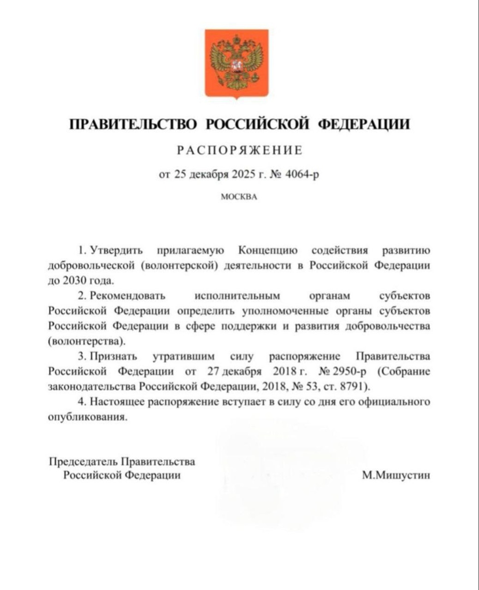 ⚡️ Правительство утвердило Концепцию развития добровольчества до 2030 года