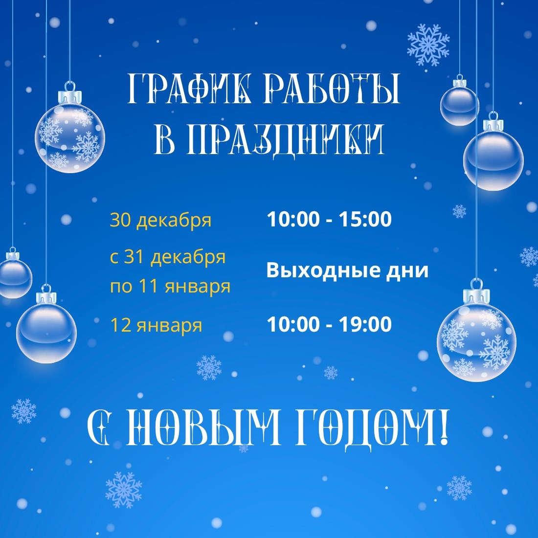 📍 31.12 - 11.01 – выходные дни