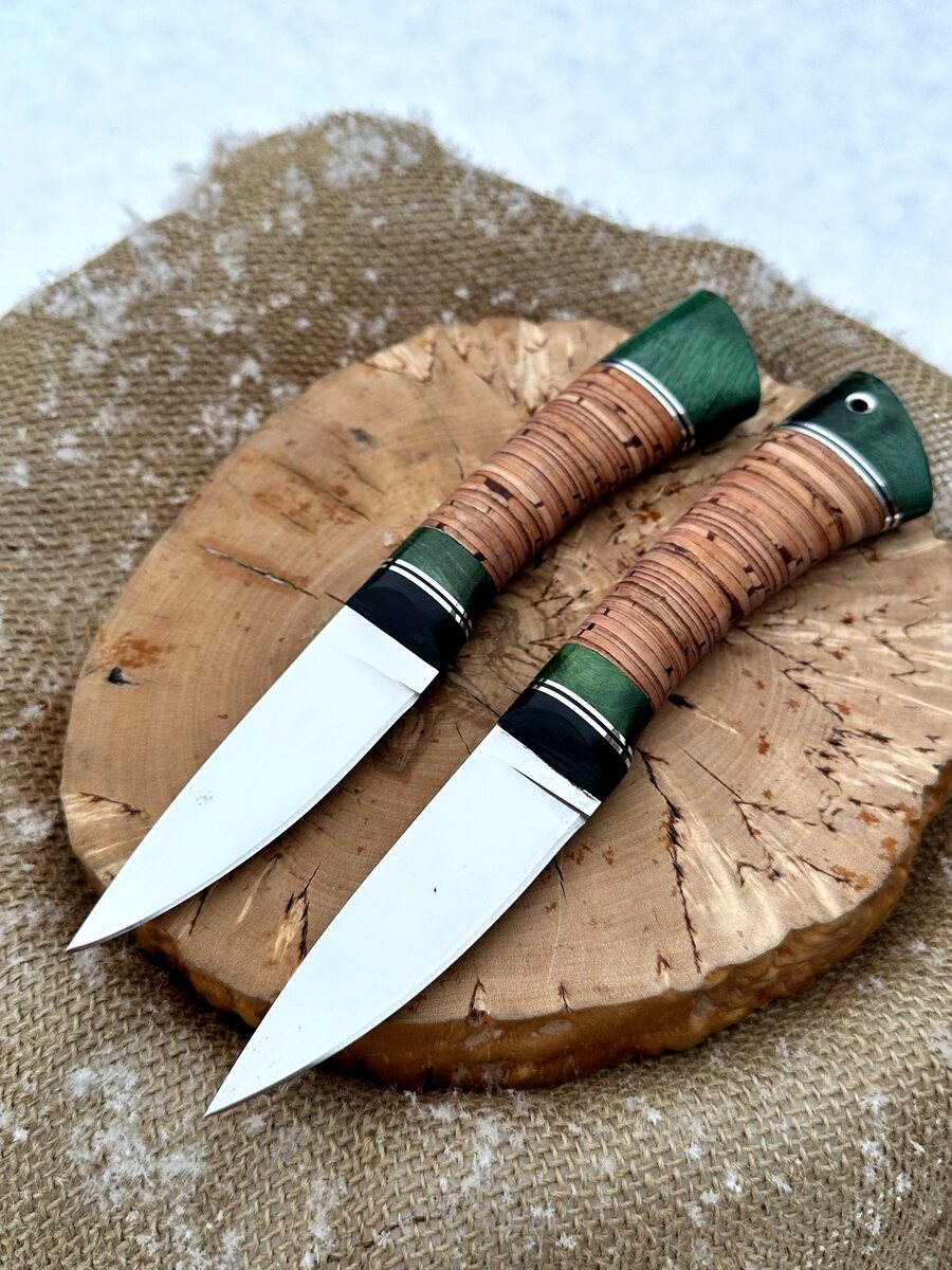 ! Идеальный помощник на кухне — *«Лиса»* отлично подходит для разделки мелкой туши, а также удобен для очистки овощей и фруктов. ⠀ - Материал клинка: нержавеющая сталь 95Х18, твёрдость 58 HRC — устойчива к коррозии, долго держит заточку - Рукоять: карельская берёза (зелёная) + береста — приятна в руке, не скользит, выглядит потрясающе - В комплекте: ножны из натуральной кожи ⠀ *Опция*: можем изготовить формованные ножны (+8 000 ₽) ⠀ 💰 Цена: 7 740 ₽ ⠀ 👉 Заказать можно через Telegram: [@Nazarklinokbot](https://t.me/Nazarklinokbot) или WhatsApp/Viber: [ +7 910 134-38-31](https://wa.me/79101343831) ⠀ #кузницаназарова #авторскиеножи #ножручнойработы #кухонныйнож #подарокмужчине #95х18 #карельскаяберёза #ручнаяработа