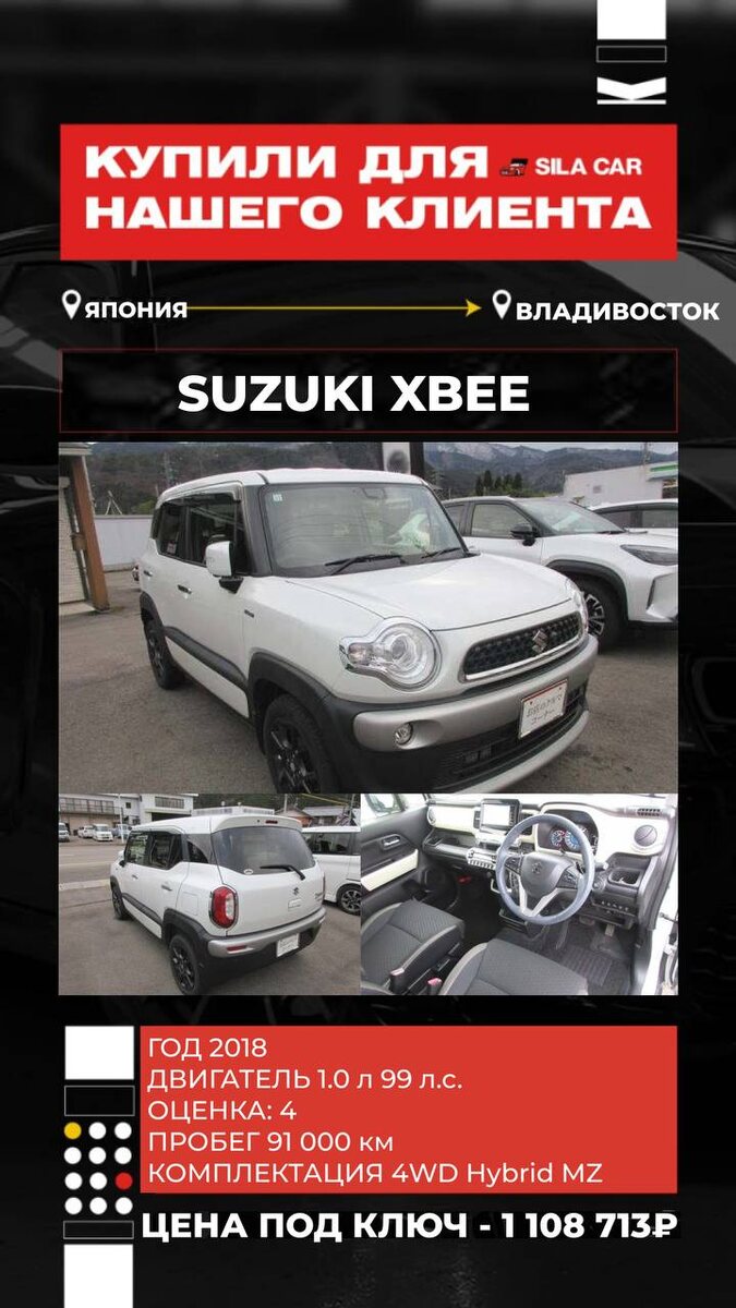 🔥 Никаких скрытых комиссий ❗️Работаем строго по договору ┏ Реально честная комиссия: ┣ 50 000₽ на авто до 1 млн ₽ ┣ От 1 до 3 млн. ₽ - 70.000₽ ┣ От 3 до 5 млн. ₽ - 100.000₽ ┗ Свыше 5 млн ₽ - 2% от итоговой стоимости САМЫЕ ЧЕСТНЫЕ ЦЕНЫ НА РЫНКЕ⬇️ Объём двигателя, см3 1000 Цена "на кнопке" ¥1 095 000 р.597 103,50 Комиссия за дорогую покупку ¥15 000 р.8 179,50 Расходы по Японии ¥77 000 р.41 988,10 Фрахт ¥55 000 р.29 991,50 Итого стоимость по инвойсу ¥1 242 000 677 262,60 ₽ Ставка таможенного платежа р.282 750,00 Тип силовой установки Топливо или параллельный гибрид Суммарная мощность, кВт 0 л.с. Утилизационный сбор* р.5 200,00 Брокерские услуги, СВХ, погрузо-разгрузочные работы, прохождение лаборатории р.60 000,00 Приёмка и забор автомобиля с СВХ, доставка до лаборатории, доставка до стоянки р.10 000,00 Комиссия р.70 000,00 НДС на комиссию 5% 3 500,00 ₽ Итого во Владивостоке: 1 108 713 ₽ 📍Купил менеджер 📞 Дмитрий +7(908)979-36-94 🔵 @SilaCar_DmGor