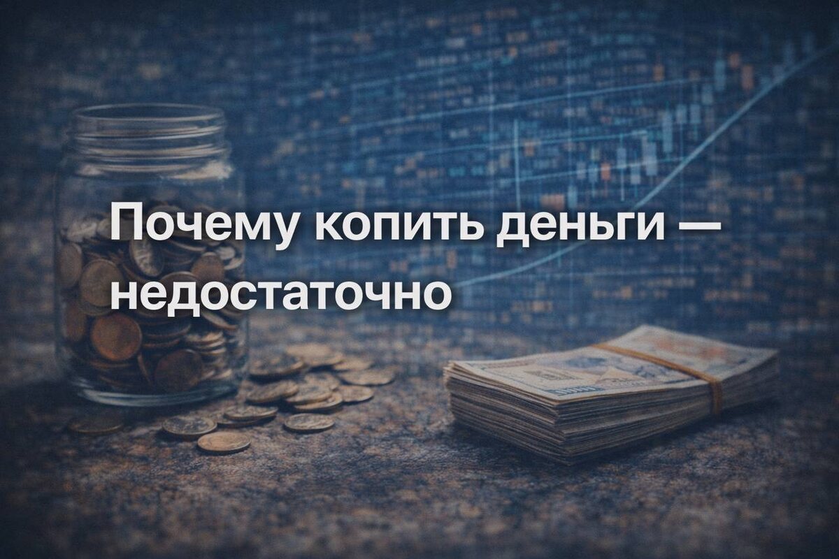 💬 Многие уверены: «Главное — откладывать. А там разберёмся». Откладывать — правильно. Но просто копить — недостаточно, если цель не просто хранить деньги, а сохранить их ценность. ⸻ 🧩 В чём проблема денег «под подушкой» Когда деньги просто лежат: — они не работают — не приносят доход — не защищены от инфляции Кажется, что ничего плохого не происходит. Сумма та же. Но проблема в том, что меняется её ценность. ⸻ 📉 Что делает инфляция на длинной дистанции Инфляция — это не разовый скачок цен. Это постоянный процесс. То, что сегодня стоит 100: — через 5 лет стоит 130–140 — через 10 лет — уже в полтора раза дороже Если деньги не растут хотя бы немного — ты каждый год можешь купить на них меньше, чем раньше. ⸻ 🧠 Что происходит с покупательной способностью Накопления создают иллюзию безопасности: — цифра на счёте есть — тревоги вроде бы нет Но со временем: — деньги «усыхают» — цели отдаляются — приходится откладывать больше ради того же результата Это тихая потеря. Без мину