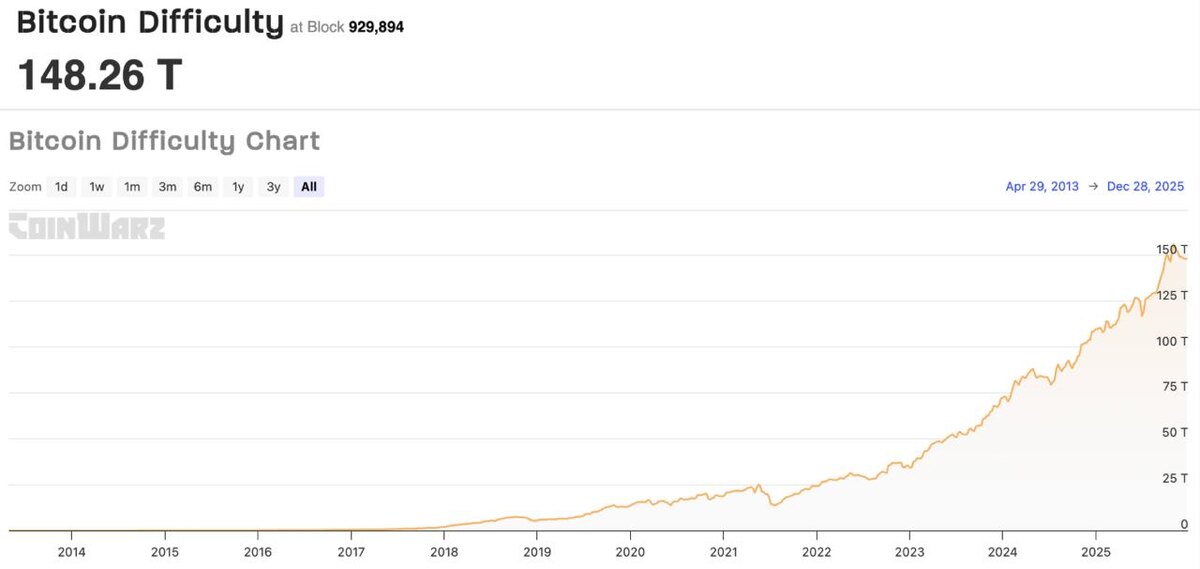 πΈΠ‘Π»ΠΎΠΆΠ½ΠΎΡΡΡ ΠΌΠ°ΠΉΠ½ΠΈΠ½Π³Π° Π±ΠΈΡΠΊΠΎΠΈΠ½Π° Π΄ΠΎΡΡΠΈΠ³Π»Π° 148,2 T Π² ΡΠ²ΠΎΠ΅ΠΉ ΠΏΠΎΡΠ»Π΅Π΄Π½Π΅ΠΉ ΠΊΠΎΡΡΠ΅ΠΊΡΠΈΡΠΎΠ²ΠΊΠ΅ Π² 2025 Π³ΠΎΠ΄Ρ ΠΈ, ΠΊΠ°ΠΊ ΠΎΠΆΠΈΠ΄Π°Π΅ΡΡΡ, Π²ΡΡΠ°ΡΡΠ΅Ρ Π΄ΠΎ 149 T 8 ΡΠ½Π²Π°ΡΡ 2026 Π³ΠΎΠ΄Π°.