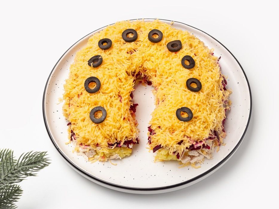📖 Ингредиенты: · Филе куриное (отварное) - 300 г. · Шампиньоны - 200 г. · Лук репчатый - 1 шт. · Яйца - 4 шт. · Сыр твердый - 150 г. · Картофель (отварной) - 2 шт. · Огурцы маринованные - 3 шт. · Майонез - для смазывания · Масло растительное - для жарки · Соль, перец - по вкусу · Укроп - для украшения 🧑🍳 Приготовление: 1. Лук и грибы мелко нарежьте, обжарьте на масле до золотистости. Остудите. 2. Куриное филе, отварной картофель, яйца и огурцы нарежьте мелкими кубиками. Сыр натрите на терке. 3. Выкладывайте салат слоями на блюде в форме подковы, смазывая каждый слой майонезом: картофель → грибы с луком → курица → огурцы → яйца → сыр. 4. Каждый слой слегка подсаливайте и перчите по вкусу. 5. Украсьте сверху веточками укропа. Дайте салату пропитаться в холодильнике 2-3 часа. #салат #новыйгод #праздничныйстол #рецепт #подкова #удача https://dzen.ru/id/5d30f5b3f2df2500ad9dda8b