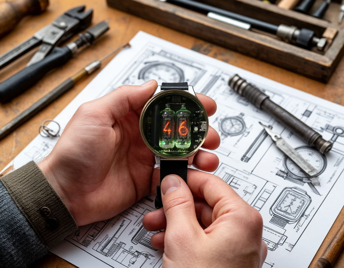 Мы будем собирать часы на газоразрядных индикаторах (Nixie). Если вы не знаете, что это — не страшно. В одной из следующих статей я подробно всё объясню. А пока — история о том, откуда растут корни этой одержимости. Личная предыстория: Волшебство в железной птице Будучи ребёнком, я часто ходил с отцом на работу. Он занимался тем, что ремонтировал стальных, многотонных «железных птиц» (по крайней мере, в моём детском воображении это были именно птицы). На самом деле всё было проще и суровее: это были военные самолёты. Однажды он с напарником оставил нас с братом в кабине, строго-настрого наказав ничего не трогать, и усадил на рабочее место члена экипажа. Именно там я впервые увидел их. Таинственные стеклянные колбы, скрывавшие загадку. Позже я узнал, что это было табло ввода координат. А потом случилось чудо. Во время очередной проверки оборудования всё табло ожило. И эти волшебные лампы загорелись мягким, тёплым, янтарным светом. Цифры на них плавно сменяли друг друга. Это зрелище за