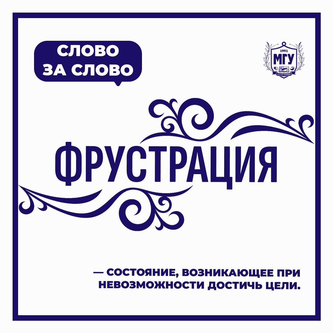 ФРУСТРАЦИЯ От латинского frustratio — «разочарование, тщетность». Состояние, возникающее при невозможности достичь цели. Исследования показывают, что умеренная фрустрация стимулирует креативность, а хроническая — приводит к стрессу и снижению мотивации. Важно различать 👇 ❌«Фрустрация» ≠ просто «грусть» ✔️ Это внутреннее состояние, вызванное блокировкой желаемого Фрустрация — сигнал, что нужно искать новые стратегии и подходы. А как вы обычно справляетесь с таким ощущением? Делитесь в комментариях! 👻 MAX|💙ВК|📝Дзен|🤩Сайт #МГУимениКуинджи #словозаслово