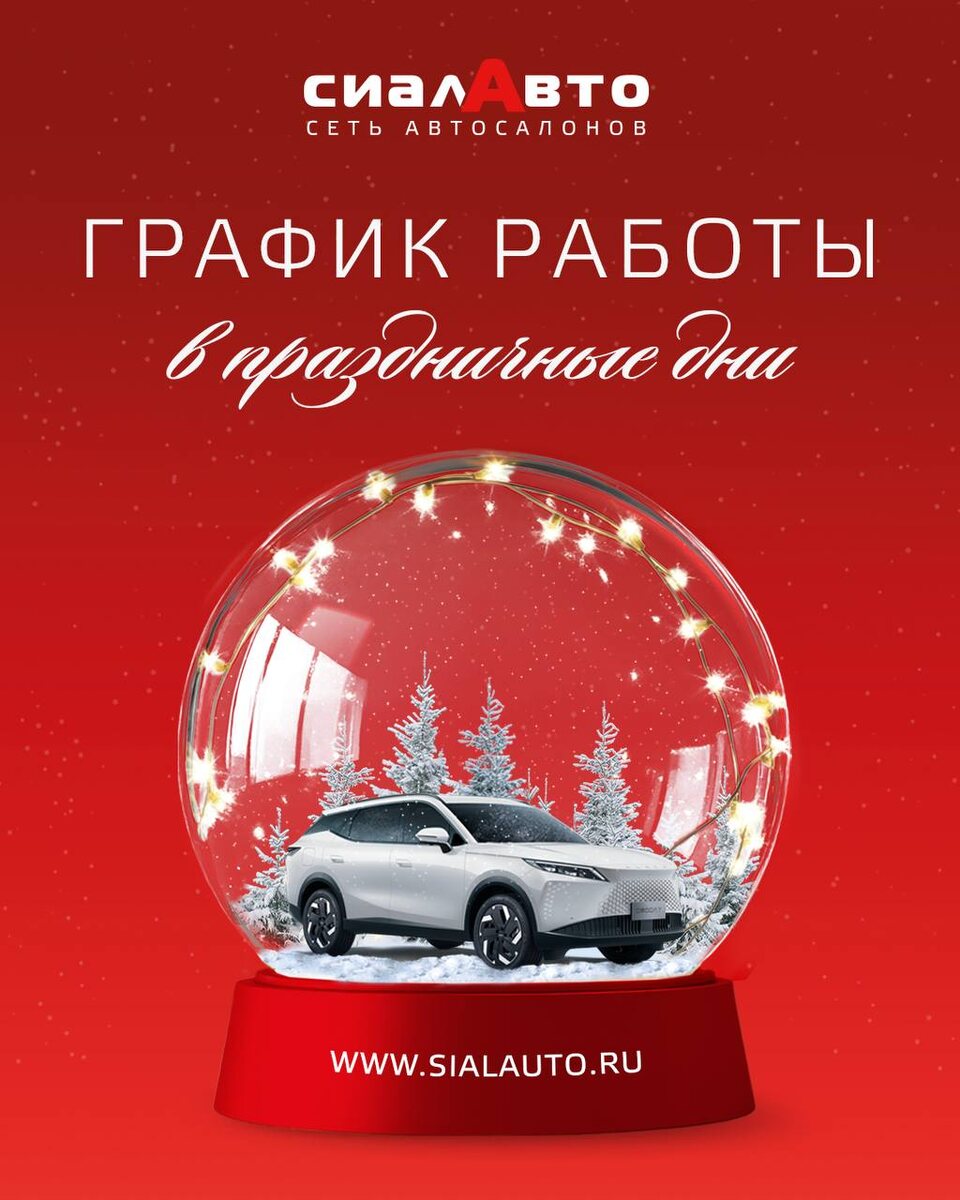Друзья, сообщаем вам о режиме работы автосалонов «СИАЛАВТО» в праздничные дни🎄🌃