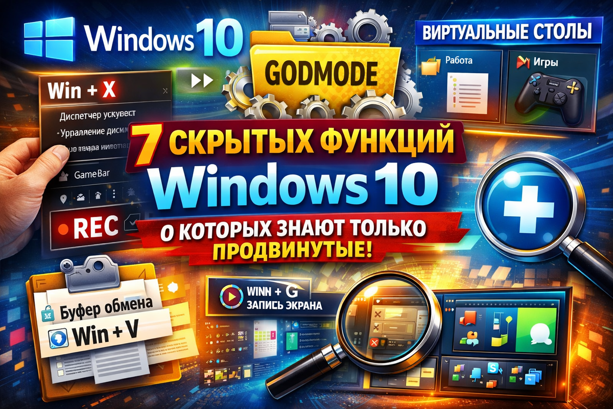 Продуктивность растёт в разы. Никаких OBS и стороннего софта - запись экрана уже есть в системе. 📌 Комбинация: 🎮 Изначально функция для геймеров, но отлично подходит для: Это секретная папка, где собраны ВСЕ настройки системы в одном месте. 📌 Как включить: GodMode.{ED7BA470-8E54-465E-825C-99712043E