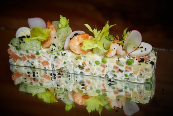 Редактор и многодетная мать Людмила Чиркова решила освоить чудеса красивой подачи оливье, и у нее это получилось, передает Sports.kz со ссылкой на Мel.fm. Оливье в нашей семье — яблоко раздора. Папе подавай оливье без морковки, но с луком, средняя ест его только с морковкой и свежим огурцом, младший любит, когда добавляют яблоко, старшая предпочитает оливье с колбасой. Хорошо, что в декабре я случайно оказалась на кулинарном мастер-классе и там научилась готовить оливье, который нужно подавать каждому отдельно. Собирается за пару минут, а эффект производит невероятный. И да, рецепт самого салата там тоже предложили альтернативный — его и возьмем как компромиссный вариант. Ингредиенты: Картофель беби — 1 кг; Яйца перепелиные — 2 десятка; Королевские креветки — по 1 шт. на порцию; Копченая курица — 600–700 г; Свежие огурцы длинные — 4 шт.; Майонез; Копченая паприка, розмарин, соль, перец; Растительное масло. Перепелиные яйца отвариваем до готовности. И аккуратно очищаем, чтобы они были ц