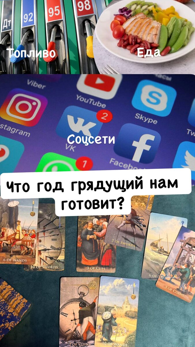 ». 📱В соцсетке еще ни раз что-то заблокируют, поставив наконец жирную точку (10 мечей) и обрубив концы (6 жезлов). Так что MAX forever, а остальные «с новым годом, пошли нафиг». 🍷В пищевой промышленности изобилие (3 кубков) граничит с хитростью: воровство идей (производство, технологии — 7 мечей), скоммуниздят и сами выпускать начнут больше. Но дешевле точно ничего не станет. 🚗Бензик и прочее топливо опять возьмет курс на повышение (6 мечей), вопрос: блин, а есть ли предел?! По 3 пентаклей похоже пока нет. Вообще в раскладе ни одного старшего аркана, а значит в этих направлениях стабильности достичь невозможно (10 жезлов), по 2 пентаклей задача сохранить хоть какой-нибудь баланс. С соцсетями вообще обломинго 🦩, многих раздавит этот вакуум.