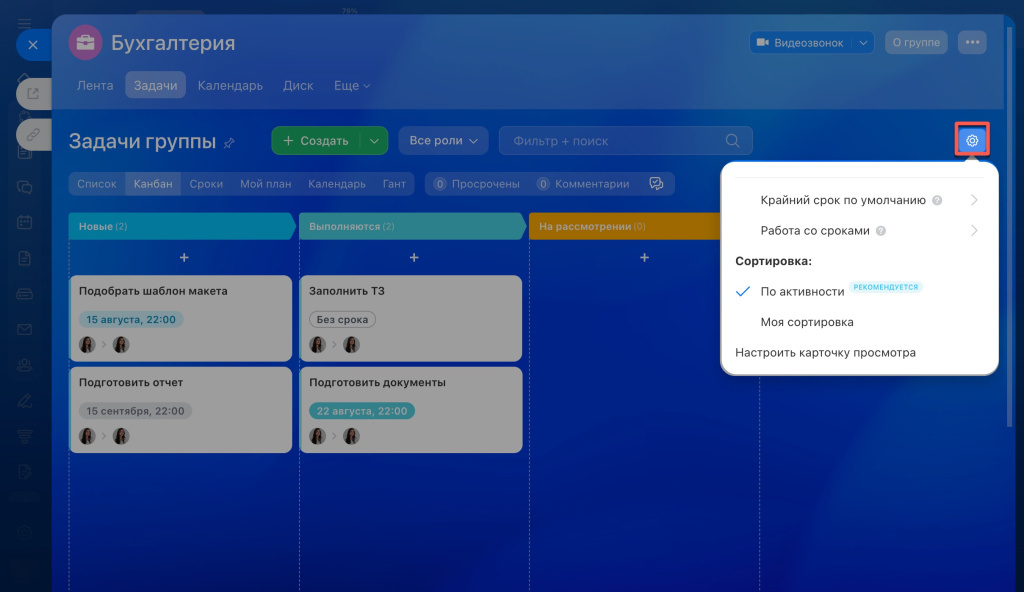 - Визуальный контроль: Используйте Канбан-доски в проектах. Все задачи — как карточки, которые перемещаются по колонкам («Новые», «В работе», «Проверка», «Выполнено»). Задачи со статусом «Просрочено» должны автоматически попадать в отдельную, выделенную колонку.