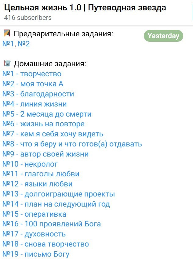 Интенсив «Цельная жизнь 1.0. Путеводная звезда» завершён 🏹 4 дня 416 участников Плотная, вдумчивая и честная работа. За это время: — вышло 19 домашних заданий, в том числе «Некролог», «Языки любви», «Жизнь на повторе» (полный список на скринах); — 10 видеоуроков: «О женской работе», «Почему не получается», «О бесконечных возможностях Бога» и др; — 4 вебинара от о. Александра Гаврилова до 2 часов 😳 каждый; — и ещё по 2 дополнительных эфира на тарифах с обратной связью от психологов Антона Зинькевича, Юлии Соседко, о. Андрея Мунгалова, о. Александра. Это было интенсивно. Местами непросто. И, судя по отзывам, очень полезно. Главное — цели на 2026 год (и долгоиграющие на 5 лет) поставлены. А — как теперь знают участники интенсива... Когда цель продумана и записана, психика сама начинает к ней идти. Появляются идеи, встречи, возможности, нужные слова. Будто сами собой. Это похоже на эффект красной машины 🚘 — купил и вдруг обнаружил, что вокруг их стало очень много. Раньше они тоже были.
