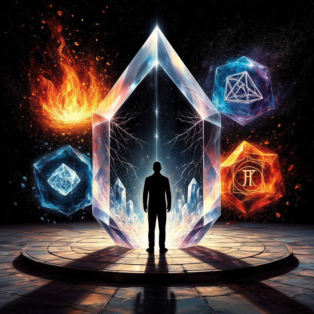 Прежде чем множить миры, нужно создать пра-мир. Ваша задача выточить из хаоса идей первичный кристалл реальности, его несущую ось. Опишите Оракулу не сцену, а дыхание момента. Не «герой стоит у двери», а «в пространстве между последним вздохом сомнения и первым движением мышц заключена вся его жизнь - тяжёлая, как плащ, промокший от прошлых дождей». Определите не просто цель, а магнит души, что неудержимо тянет персонажа вперёд. Обозначьте не просто противника, а тень, которую он отбрасывает на солнцезалитый мотив героя. Этот кристалл, эта сгущённая до предела сущность ситуации и есть то семя, в котором уже в свёрнутом виде содержится древо со всеми его возможными ветвями.
