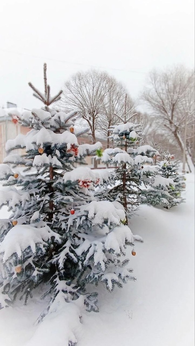 На перекрестке улиц Горького и Пушкина. Голубые ели в ожидании Нового 2026 года.