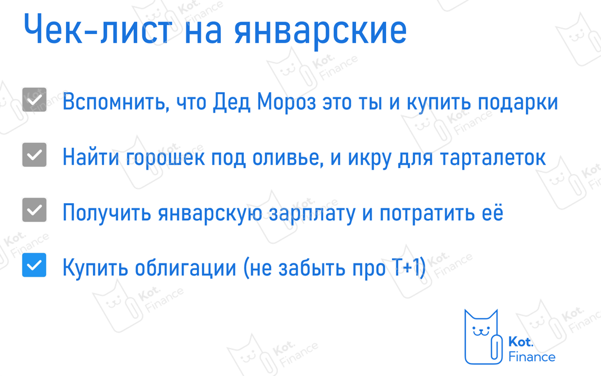 Осталось два рабочих дня до Нового года, что это значит? Мандаринки, оливье, подарки? – да, но не только! В условиях Т+1 нужно успеть разместить свободную ликвидность сегодня! 🤝Присоединяйся к сообществу Кот.Финанс: мы делаем обзоры компаний, рынков, недвижимости -- Как это работает? Т+1 – это режим торговой площадки, при котором расчеты происходят на следующий день после заключения сделки. Например, если вы купили акцию накануне отсечки на дивиденды – дивидендов вы не получите, т.к. собственником акции станете только на следующий рабочий день. Аналогично с НКД и облигациями Рассмотрим на примере LQDT LQDT – самый предсказуемый фонд, впрочем, как все фонды денежного рынка. Особенности фонда, мифы мы уже разбирали. И даже шутили 😉 В неделе 5 торговых дней, а проценты начисляются 7. В понедельник должны приходить проценты за субботу, воскресенье, и понедельник. Но в условиях Т+1, это происходит в пятницу. А купить надо в четверг. Тоже самое с праздничными днями. Учитывая, что 31 биржа