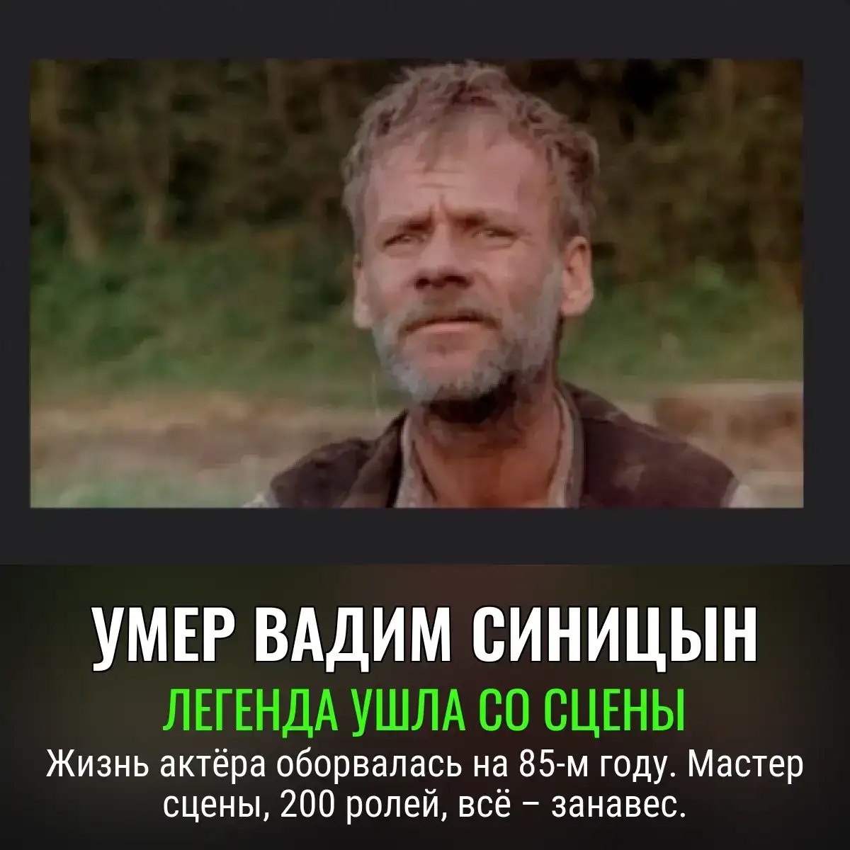 Готовьте носовые платки: в 85 лет скончался Вадим Синицын, тот самый артист, который на полном серьёзе играл в «Танке “Клим Ворошилов-2”» и