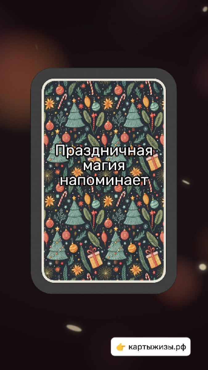 «Новогоднее Таро» — это карты про праздничное настроение, тихую магию декабря и смыслы, которые прячутся между мандаринами, ёлкой и оливье. Пожелания денег — про слова, которые создают ощущение изобилия. Позвольте себе желать денег вслух. Да, вот так просто. Если вы всем желаете достатка, а себе — только безжалостное «ты можешь лучше», баланс легко съезжает. Пожелайте себе тоже. 💸 Прямое: щедрые слова, добрые намерения, настрой на изобилие. ✨ Перевёрнутое: вы желаете всем, кроме себя и забываете про собственные потребности. 🌠 Совет: напишите себе открытку с пожеланием богатства и счастья и спрячьте её до следующего Нового года. Посмотреть карту и другие значения — на картыжизы.рф 🎆 #знакивселенной #картадня #картыжизы #новогоднеетаро