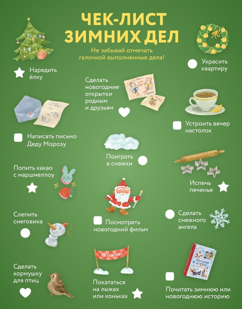 ❄️ Чем заняться на зимних каникулах? Сохраняйте наш чек-лист идей