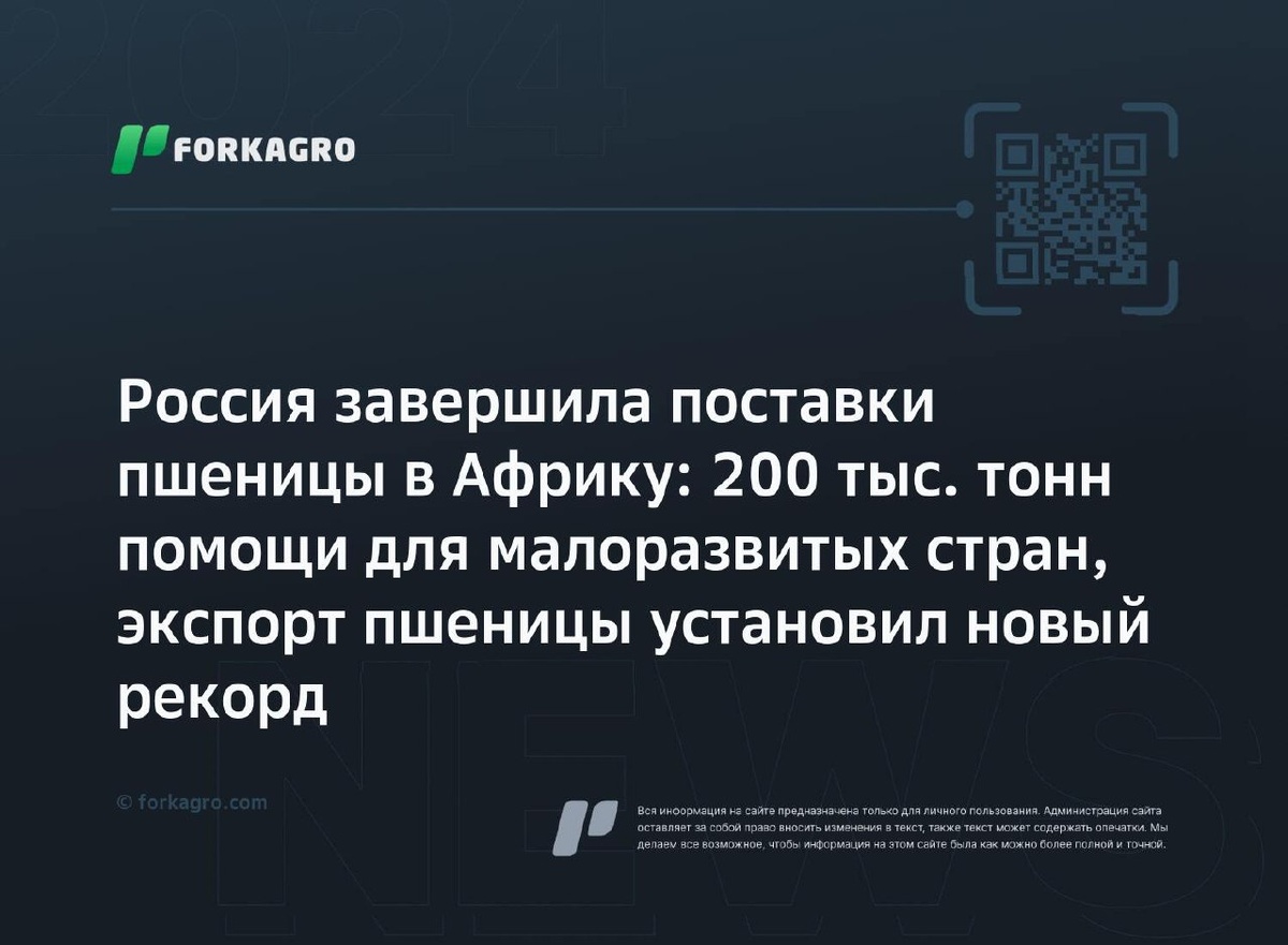 тонн помощи для малоразвитых стран, экспорт пшеницы установил новый рекорд Россия завершила поставки 200 тыс. тонн пшеницы в шесть стран Африки с низким уровнем благосостояния. Это стало возможным благодаря сотрудничеству с компанией "Объединенная зерновая". В 2023 году Россия экспортировала свыше 66 млн тонн зерна на сумму около 16,5 млрд долларов. Россия продолжает лидировать в мировой торговле пшеницей, поставляя ее в разные страны. Перейти к источнику