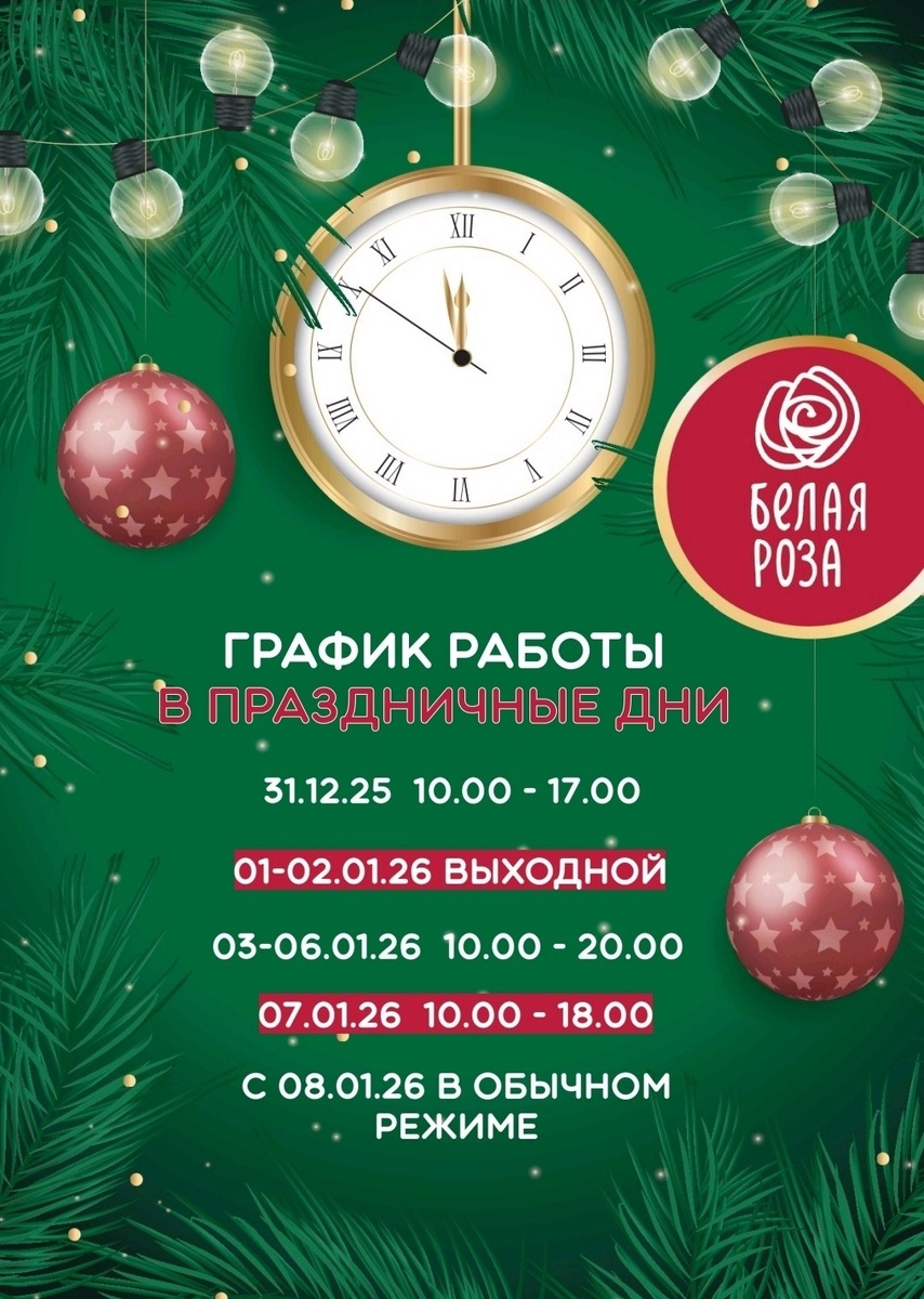 🎄✨ Праздничный график работы «Белой Розы