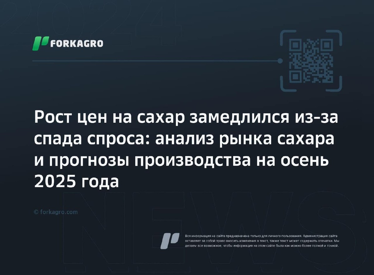 Рост цен на сахар замедлился из-за спада спроса: анализ рынка сахара и прогнозы производства на осень 2025 года