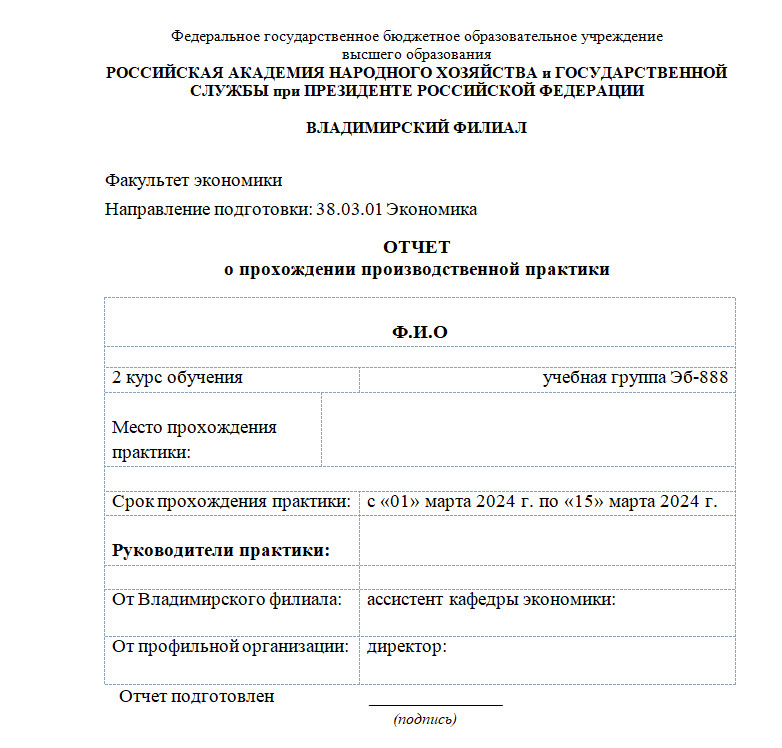 Структура отчёта о практике в РАНХиГС: