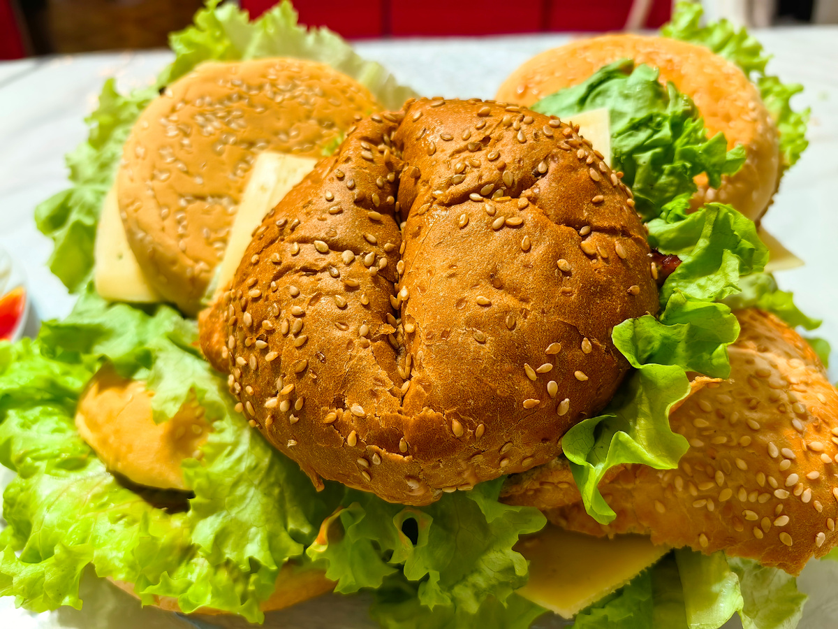 Фишбургеры — это вкусно, полезно и отличная альтернатива мясным. Главные секреты — сочность котлеты и хрустящая корочка. Вот подробный рецепт, который точно получится. Для приготовления нам понадобятся булки, фарш из белой рыбы, лук, зелень листовой салат, помидоры, плавленый сыр. Если фарш после охлаждения кажется слишком влажным, можно добавить ложку сухарей. Если суховат — чайную ложку молока или сливок. Для соуса берем немного греческого йогурта, майонез, каперсы, по желанию сок половины лайма. Котлеты формируем по размеру булки и делаем их не очень высокими, чтобы равномерно прожарились. Обваливаем каждую котлету в муке, затем окунаем в яйцо, и, наконец, плотно обваляв в сухарях, кладем в сковороду с разогретым маслом. Пока котлеты отдыхают, смешиваем все ингредиенты для соуса в миске. Он должен быть достаточно густым. Готовим овощи для сборки, моем салат, нарезаем помидор и лук, поджариваем булочки. Собираем бургер поочередно – нижнюю булочку смазываем соусом, затем кладем лист с