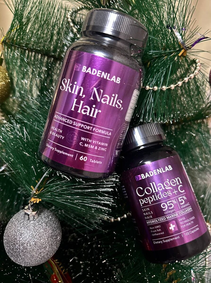 ! И теперь я понимаю почему.❤️ ❤️Рассказываю про находку, которая уже стала must-have в моей рутине красоты: комплекс из двух банок — морской коллаген с витамином С и специальные витамины для кожи, волос и ногтей.❤️ ❤️Это не просто добавки, а продуманный дуэт, который работает изнутри. Кожа стала более упругой и сияющей, ногти перестали слоиться, а волосы выглядят живее. 🦋 Заметила эффект где-то через месяц. Что внутри и как это работает? ☑️Коллаген + Витамин С: Морской коллаген стимулирует выработку собственного, разглаживая кожу. А витамин С не только усиливает этот процесс, но и защищает от старения как мощный антиоксидант. ☑️Комплекс для волос, кожи и ногтей: Здесь собрали настоящий отряд красоты: цинк и медь для крепости ногтей и здоровья кожи, MSM и кремний для усвоения полезностей, L-лизин и L-пролин для укрепления волос. Применять легко: · Коллаген: 4 капсулы утром за 30 минут до завтрака. · Витамины: 2 таблетки в день после еды. Этот набор безопасен для длительного приема и
