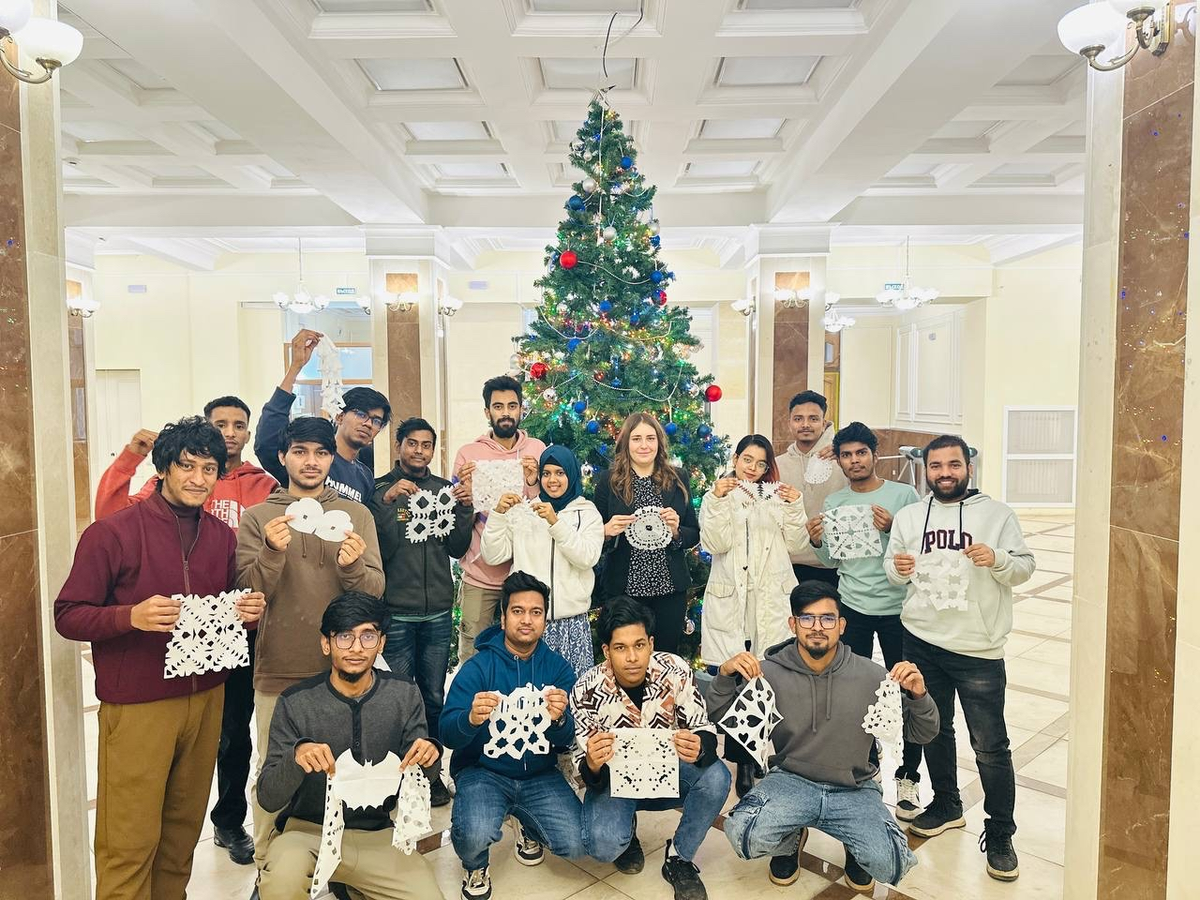 Накануне самого волшебного праздника на подготовительном отделении прошел цикл кураторских часов, посвященный новогодним и рождественским традициям в России. Для наших слушателей, которые приехали учиться в нашу страну из самых разных уголков планеты, эта тема оказалась особенно интересной. Кураторские часы проходили в теплой, дружеской атмосфере. В каждой группе кураторы рассказали о русских зимних традициях: почему наряжают елку, кто такая Снегурочка, что такое «щедрый, российский» Дедушка Мороз и почему принято загадывать желание под бой курантов. Слушатели с удивлением узнали о гаданиях на Старый Новый год и традиции писать желание на бумажке, сжигать ее и пепел высыпать в бокал с шампанским. Под звуки классических русских новогодних песен – «В лесу родилась елочка», «Пять минут» - студенты вместе с кураторами наряжали пушистую лесную красавицу, вырезали снежинки. Это был живой и веселый процесс, полный смеха и общения. Обучение – это не только учебники и лекции. Это еще и моменты
