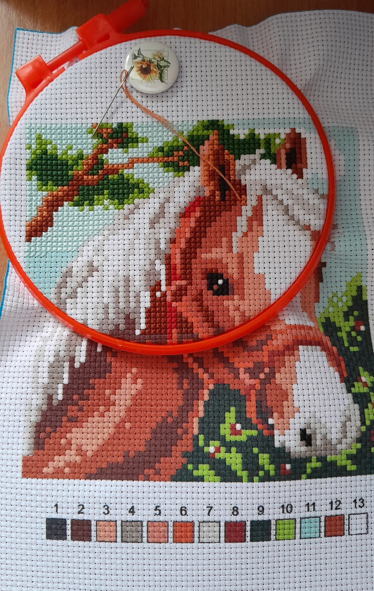 У меня на пяльцах новые крестики...Грядёт год лошади,поэтому хочется вышить именно лошадку, надеюсь на каникулы,что будет время дошить эту красоту.