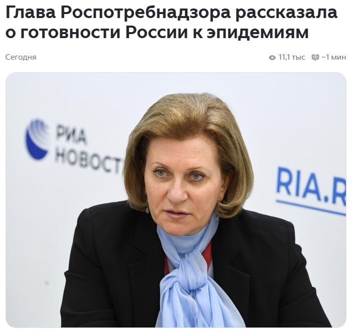 Россия готова к будущим эпидемиологическим угрозам, которые могут быть страшнее COVID-19, Роспотребнадзор сделает все, чтобы обойтись без ограничений и значимых рисков для жизни и здоровья граждан, завила глава ведомства Анна Попова. P.S. Короче готовьтесь к новым спектаклям с участием искусственных патогенов, интересных вакцин и прочей атрибутики.