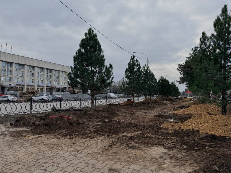 На Платовском проспекте в Новочеркасске высадили 12 крупных сосен