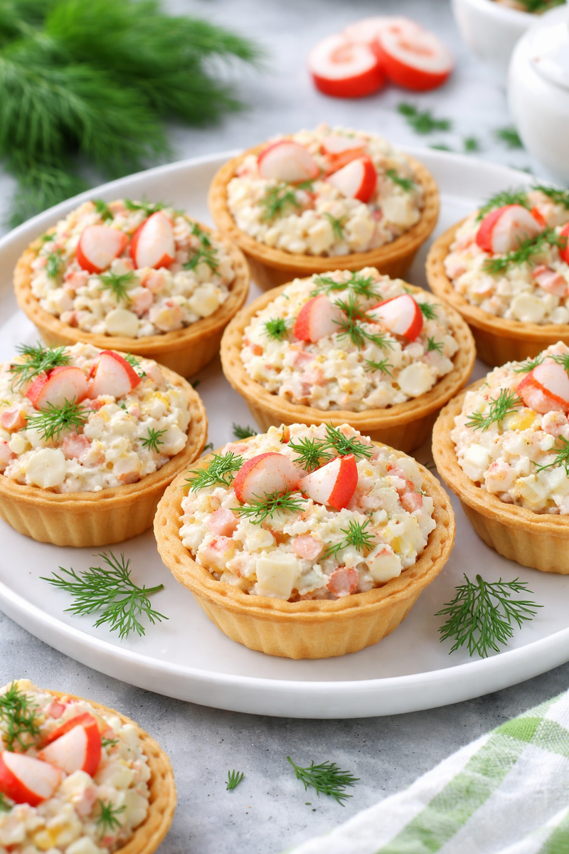 Эти тарталетки — не только вкусное, но и достаточно полезное блюдо. Крабовые палочки содержат белок, а творожный сыр богат кальцием и фосфором. Сочетание этих ингредиентов поддерживает здоровье костей и зубов, а также способствует нормализации обмена веществ. Важно, что майонез можно заменить на более легкие соусы или заменить его частью на нежирную сметану, если вы следите за калорийностью.