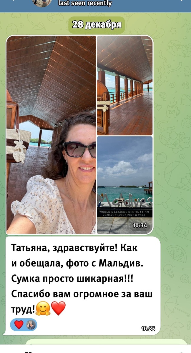 -Как же я люблю когда мои творения не скучают в унылых шкафах - радовалась Тата, получив привет с Мальдив от прекрасной леди Ольги