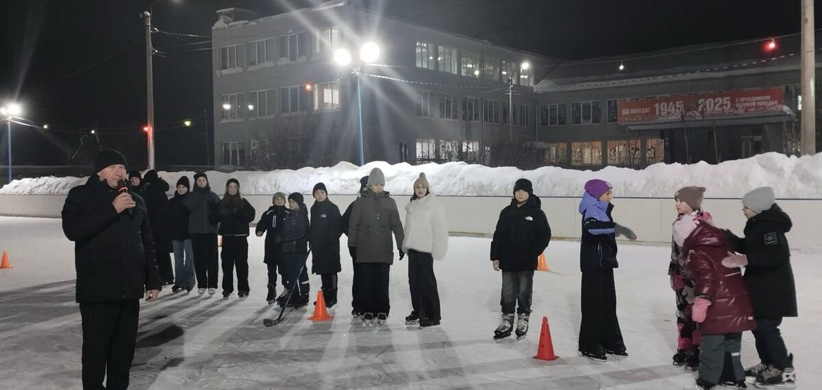 Спорт на свежем воздухе — залог здоровья и бодрости духа, особенно для подрастающего поколения. Однако подготовка ледовой площадки — задача не из легких. На помощь пришли сотрудники 60-й пожарно-спасательной части 10-го ПСО, которые помогли залить каток к открытию зимнего сезона. Несмотря на резкое ухудшение погоды и сильный снегопад, все трудности были оперативно преодолены: снег убрали, лед залили, и 25 декабря на хоккейной коробке ДЮСШ "Темп" собрались юные спортсмены, их родители и тренеры. Мероприятие началось с теплых слов напутствия от директора спортивной школы Виктора Чупина, пожелавшего ребятам крепкого здоровья, спортивных успехов и хорошего настроения. После торжественной части начались веселые эстафеты на коньках — кто-то осторожно осваивал первые шаги на льду, а кто-то уверенно демонстрировал навыки фигурного катания. Особый восторг у детей вызвал хоккей на валенках — захватывающая игра, где ловкость важнее скорости. А после активных состязаний все желающие могли