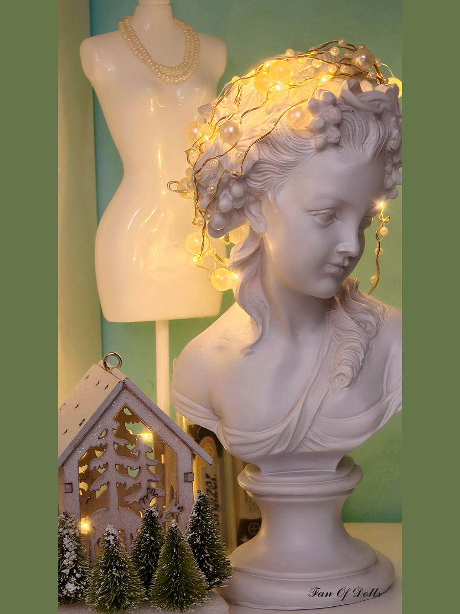 По сложившейся традиции я выкладываю свои новогодние инсталляции каждый год. В этом году я немного припозднилась. Нет, наряжать свое пространство я начала еще в середине декабря. А сегодня оформились последние штрихи композиций. Первая композиция родилась на кукольных полочках. В этом году я решила не доставать куклам их серебристо-белую елочку, а поставить много маленьких. Они такие милые. Елочки были в гирлянде (в баночках). Эту гирлянду я давно разобрала и пользовалась елочками отдельно. Вы можете их увидеть в постах и статье за прошлый год. Здесь я повторяться не буду. Все найдете в подборке "Новогодние костюмы". Сейчас же елочки воткнуты в вспененный полиэтилен (он применяется для упаковки техники, например). Домик с оленями у нас был уже с прошлогодних праздников. Гирлянда прекрасно подошла статуэтке в качестве венка. И кукольный манекен как символ нашей костюмерной тоже вписался в эту композицию. Еще одна гирлянда досталась Катрине. Следующая новогодняя инсталляция переместилась
