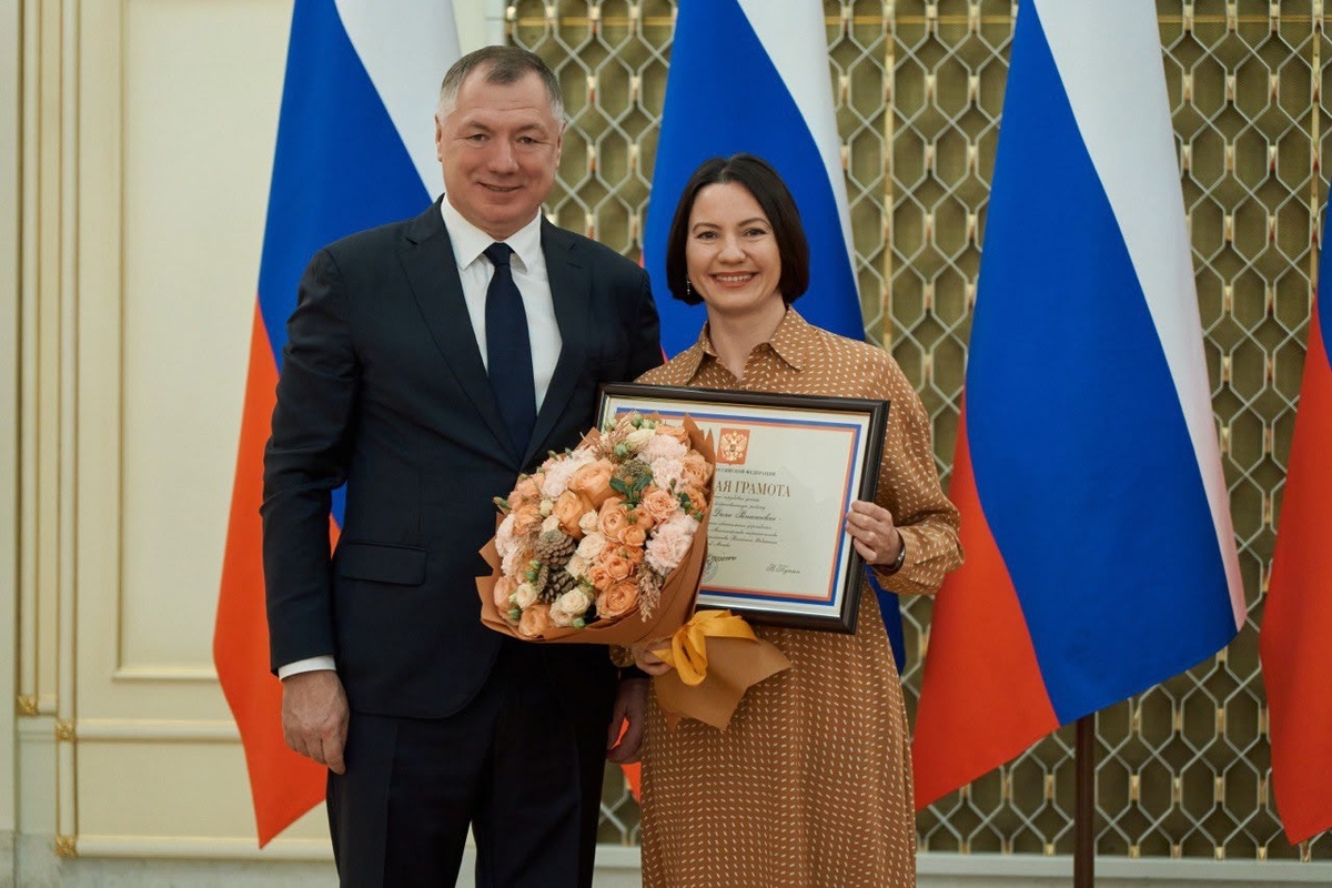 Грамоту вручил лично заместитель Председателя Правительства Российской Федерации Марат Хуснуллин.