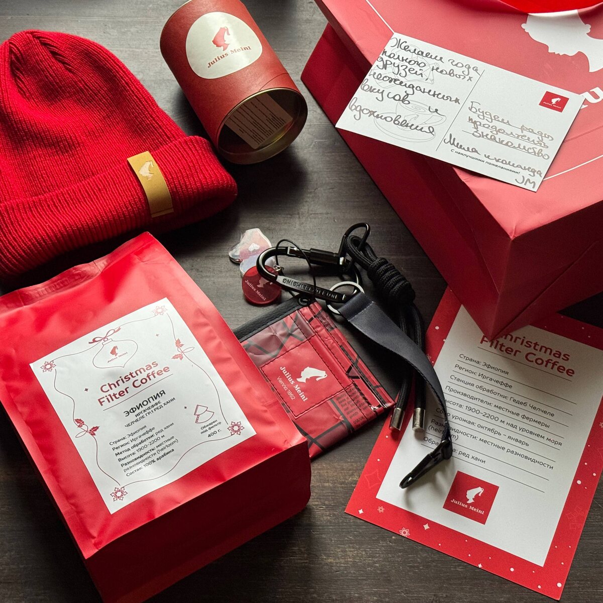 Новогоднее настроение продолжается! 🎄 Приехала невероятная коробка от Julius Meinl! Есть два момента, из-за которых мне интересен этот бренд: • они ежегодно проводят крутой чемпионат JM Barista Skills; • я знал JM как бренд коммерческого кофе, но они уже занимаются спешелти. Поэтому буду пробовать Эфиопию Иргачеффе Челчеле гр.1 в обработке Ред Хани и обжарке под фильтр. Этот кофе был на финале JM Barista Skills 2025. Дальше ещё неожиданнее: яркая зимняя шапка, ароматная свечка и связка аксессуаров. Шапку я уже померил – мне идёт. 😁 Большое спасибо команде Julius Meinl за эти восхитительные подарки! 😊 @Кофезавр