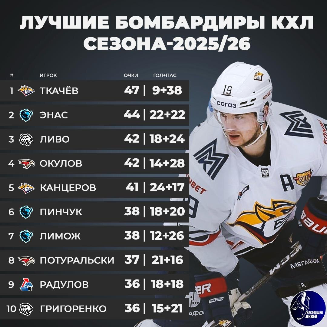 ⚡️🦊 Владимир Ткачёв сохраняет лидерство в гонке бомбардиров сезона КХЛ
