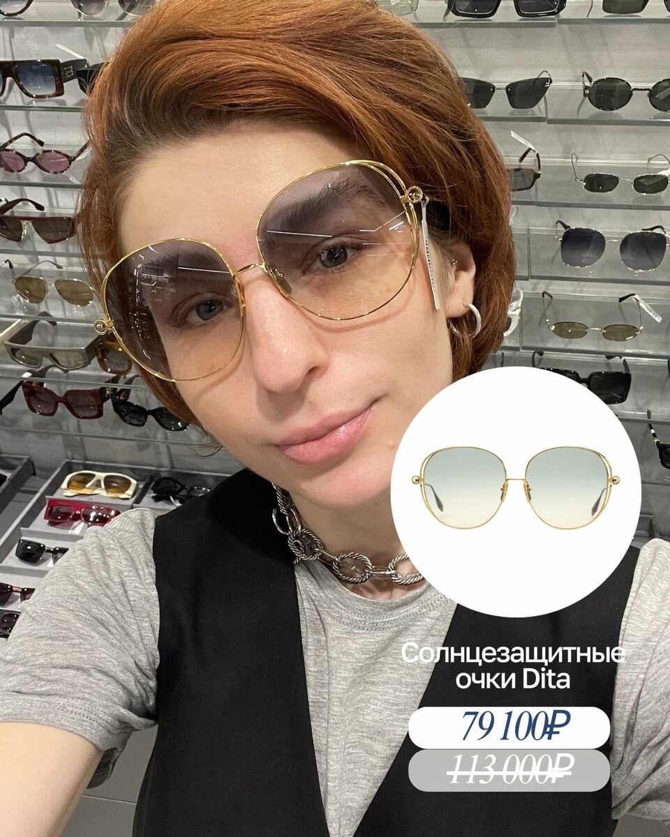 🖤 Вы только посмотрите на эти произведения искусства, которые придумали мужчины, вдохновившись несравненной Дитой фон Тиз 💖(эти очки просто созданы для того, чтобы порадовать себя и близких на Новый год): 🟣солнцезащитные очки Dita с чёрной пластиковой оправой 65.800₽ 94.000₽ 🟣солнцезащитные очки Dita 79.100₽ 113.000₽ 🟣солнцезащитные очки с градиентной линзой Dita 79.835₽ 114.050₽ 🟣 солнцезащитные круглые очки Dita 57.890₽ 82.700₽ 🖤 Напоминаем, что каждый день для вас на связи заботливый персональный консультант, который сможет помочь подобрать вам идеальные очки онлайн Все оправы | Все с/з очки