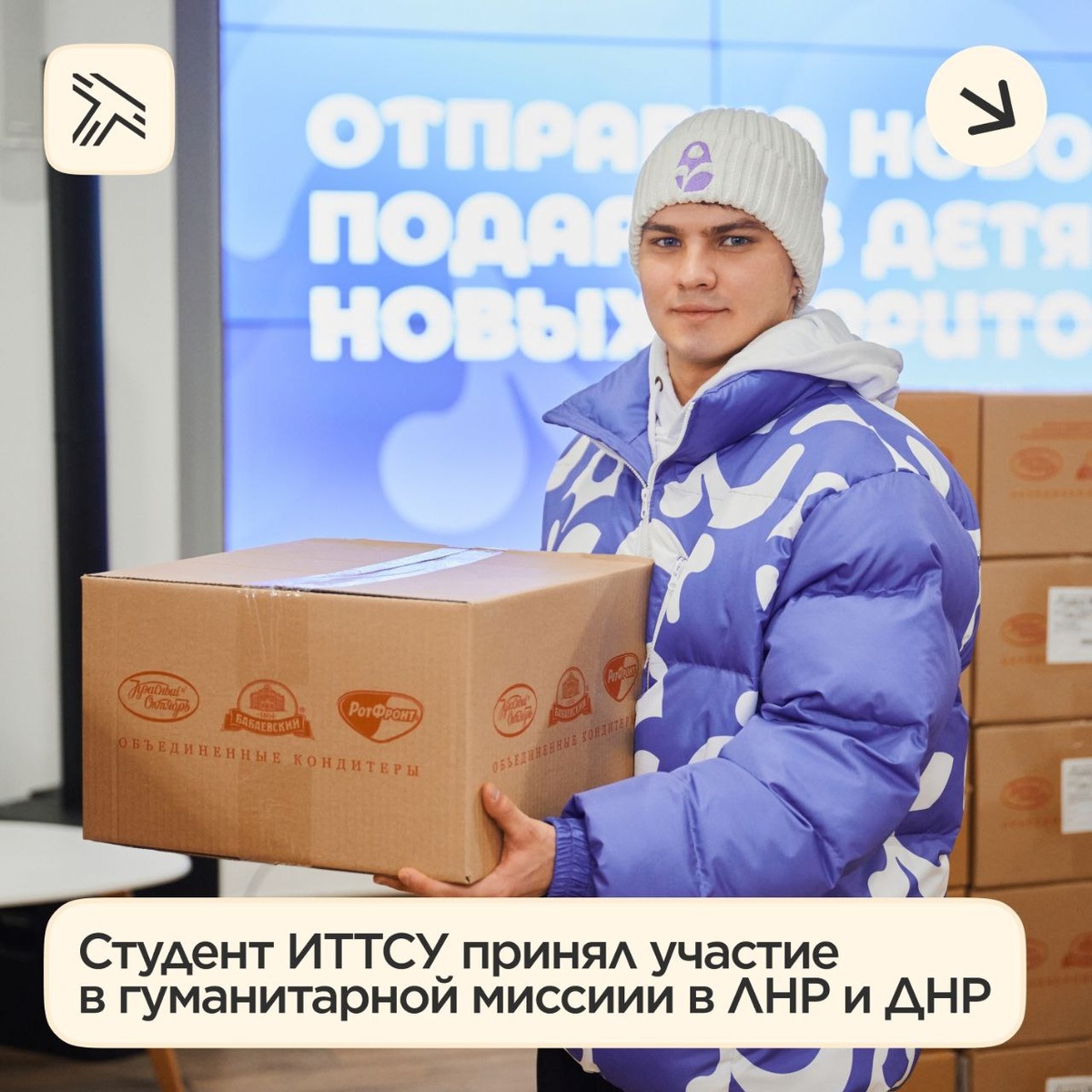 Студент ИТТСУ ⚡️ принял участие в праздничной гуманитарной миссии: в Луганскую и Донецкую Народные Республики отправили подарки для детей к