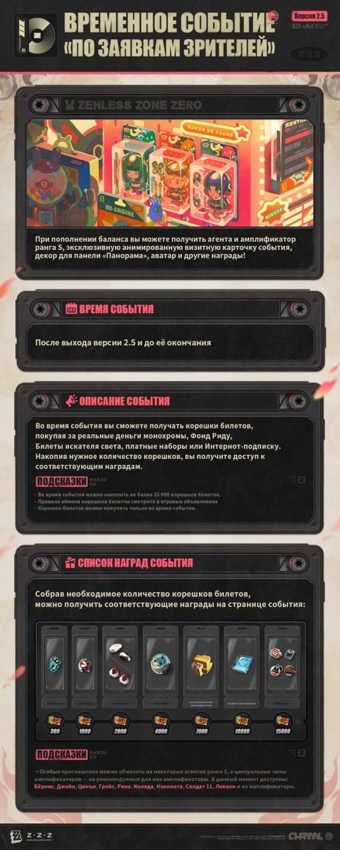 С версии 2.5, если вы выбьете агента ранга S в 8-й раз и дальше, то помимо 100 отголосков сигнала получите ещё и 1 особое приглашение Если же вы уже получали одного и того же S-агента 8+ раз до выхода 2.5 — не переживайте, все особые приглашения придут вам по почте после обновления Особые приглашения можно обменять на некоторых агентов S-ранга: 👨🚒 Бёрнис 🐀 Джейн 🚓 Цинъи 🛠 Грейс 🐺 Рина 🛠 Коляда 🐇 Некомата 🧑🚀 Солдат 11 🐺 Ликаон #zzz_официально / Подпишись на Сенсея